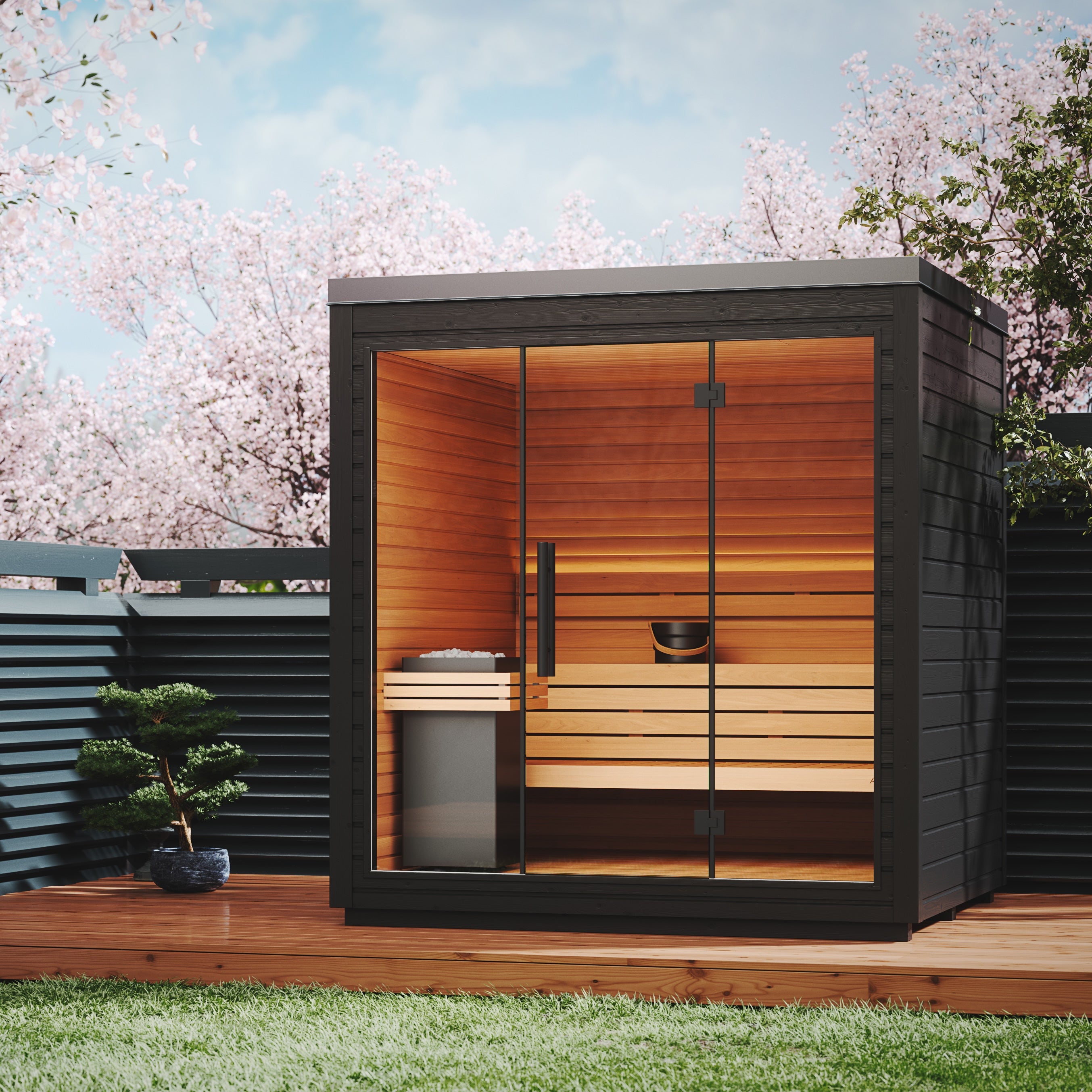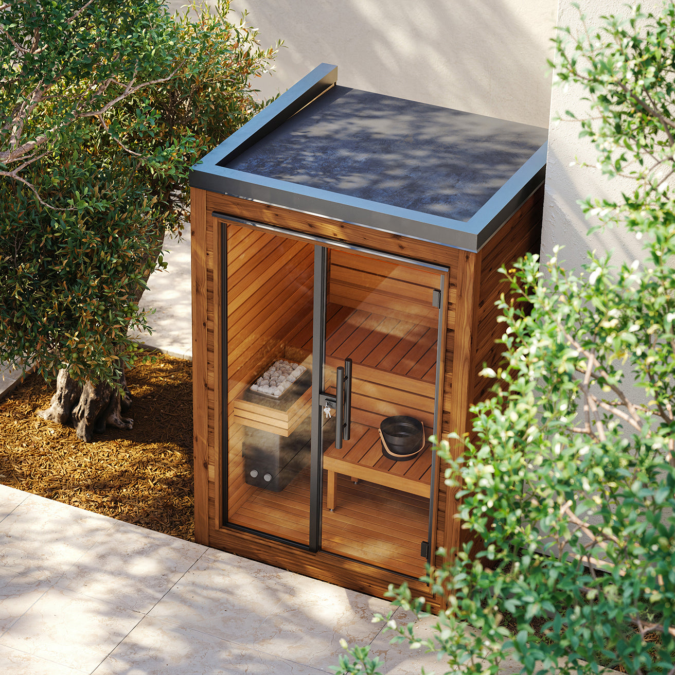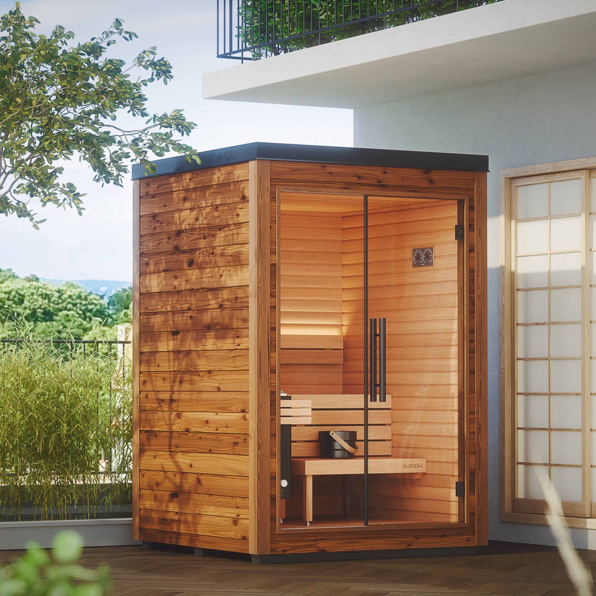 Sometimes simpler is better, and Mira’s minimal, space-saving design has everything you need for a calming, enjoyable outdoor sauna without overcomplicating things.