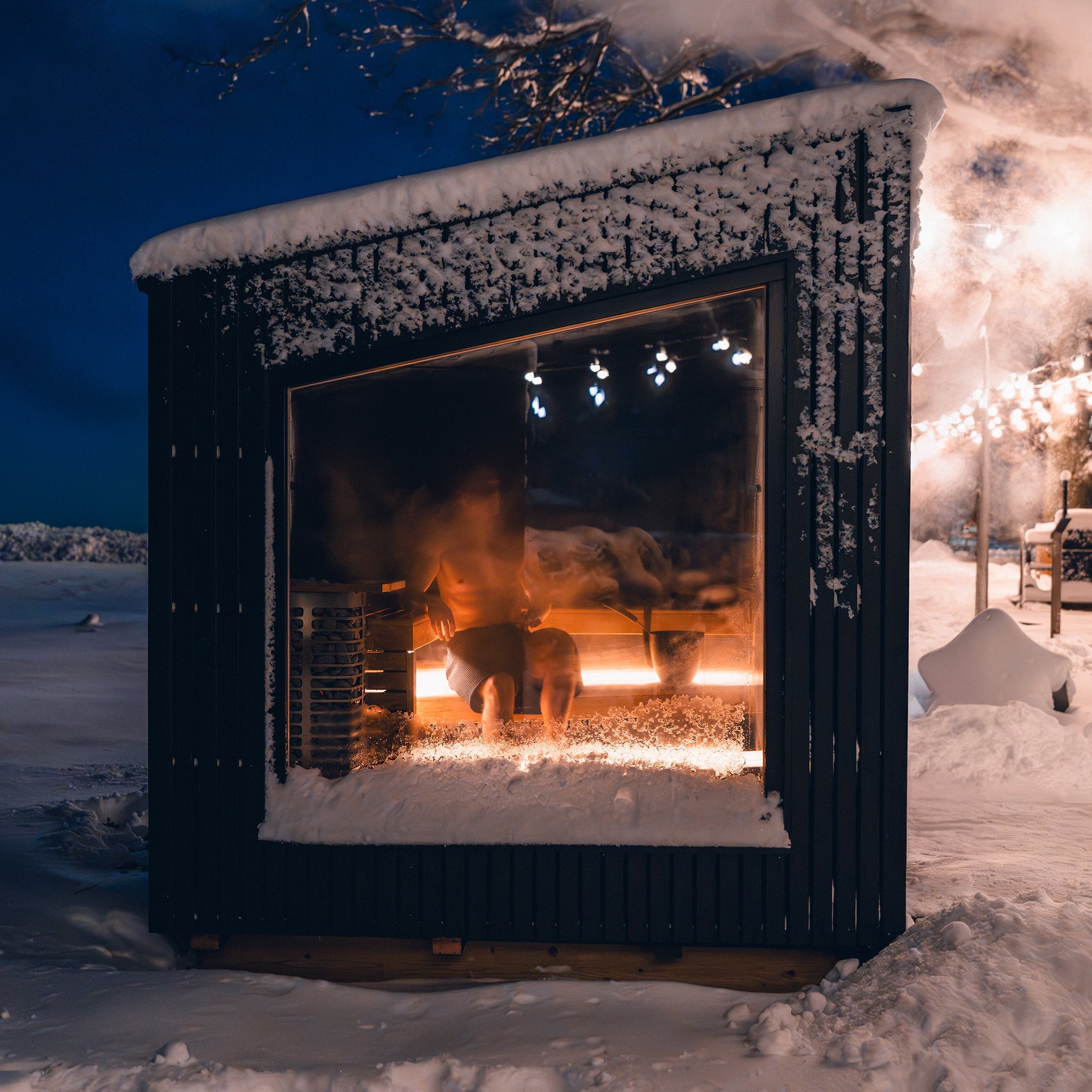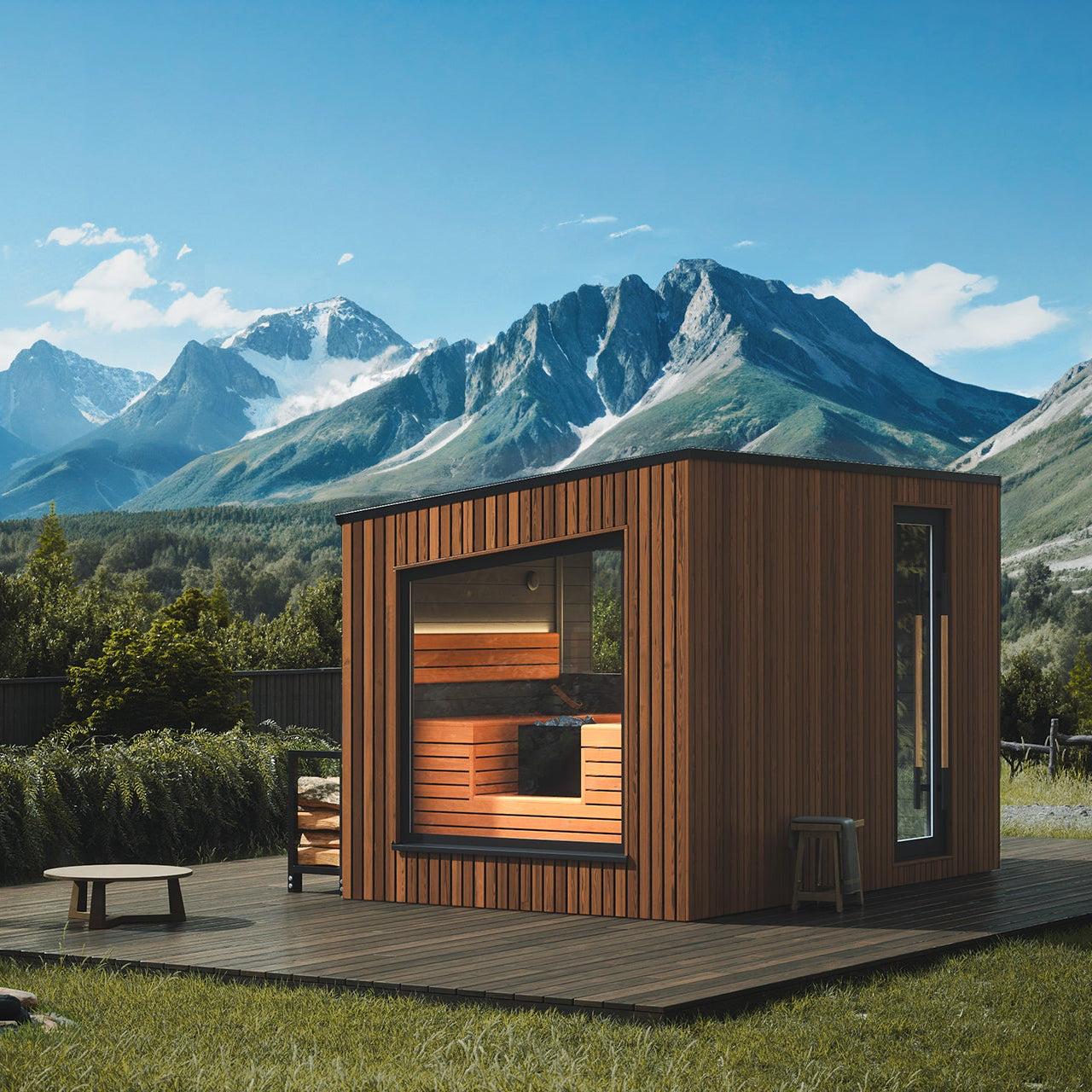 Terra is a luxurious outdoor sauna that allows you to create your own custom wellness space with a stylish, modern look. With two size options, you can choose between a sauna only or a larger space with an area for changing and relaxing in addition to the sauna itself.